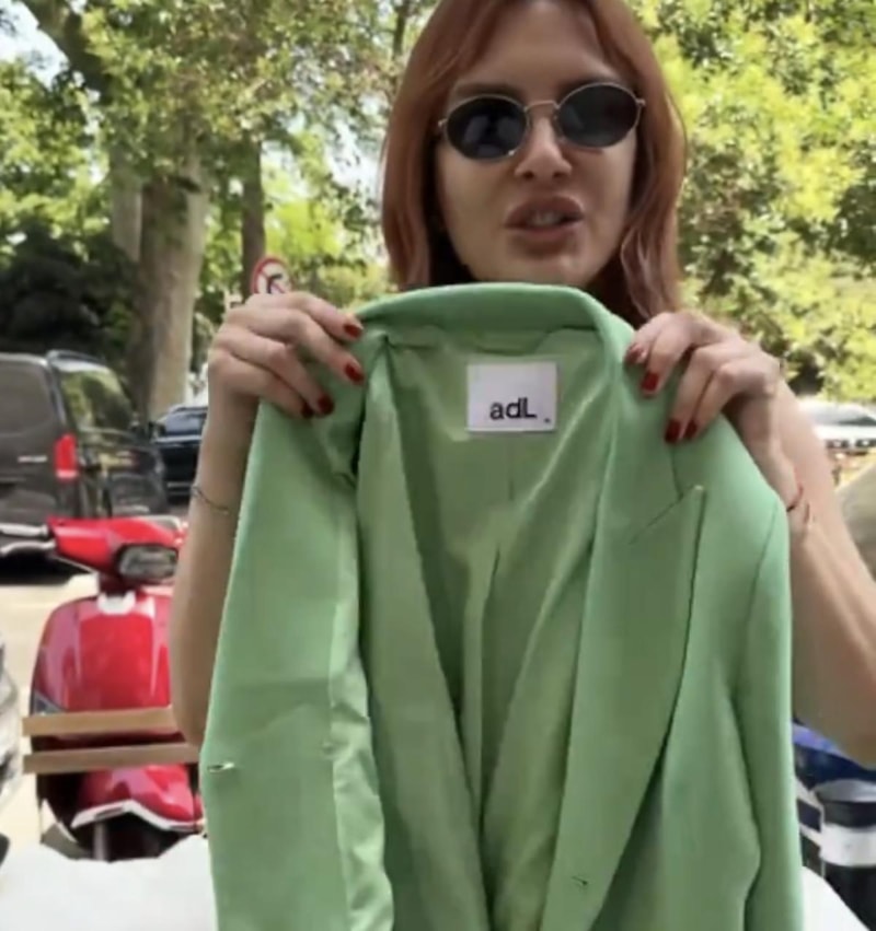 Dün aldım, bugün yayında giyeceğim... Önce toplantıya gitmem gerekiyor. Alırken kontrol etmemişim. Bakın kaldığım şey bu, Adil Işık'la... Bir de yetmiyor hem etekte hem cekette... Aldığım yerden uzaktayım. Marka özensizliğini izliyorsunuz şu anda. Kendilerine nasıl yakıştırıyorlar ben bilmiyorum." sözleriyle dile getirdi.