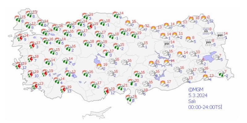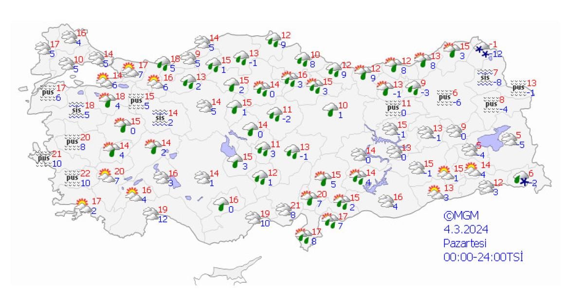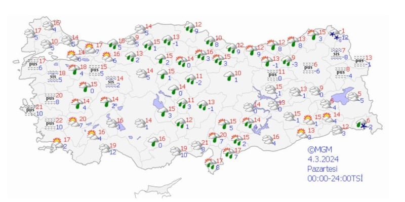Ankara, İstanbul ve İzmir'de salı ve çarşamba yağış beklenirken, pazartesi Ankara ve İstanbul'da sıcaklık 14 derece, İzmir'de 21 derece olacak.