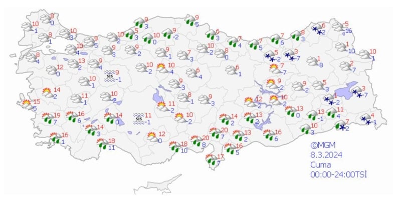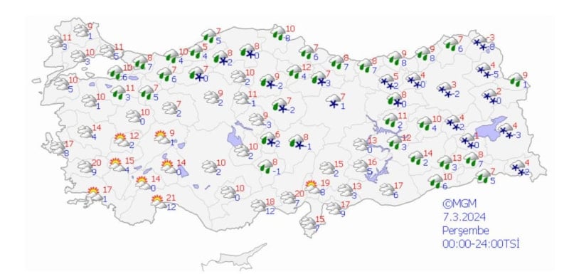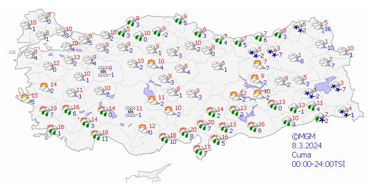 Sıcaklık, ülke genelinde mevsim normalleri civarında yer yer de mevsim normallerinin altında seyredecek.