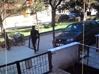 Güpegündüz bahçe demir kapısını yerinden söküp çaldılar İZLE