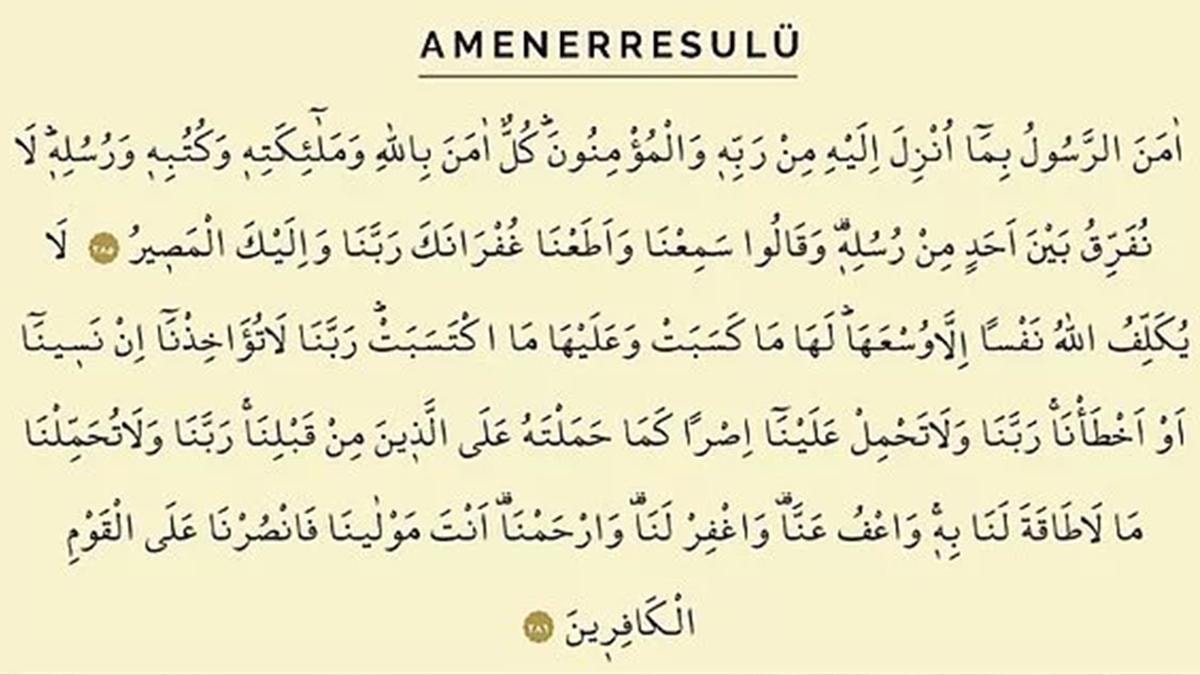 Bakara Suresinin son iki ayeti: Amenerrasulü