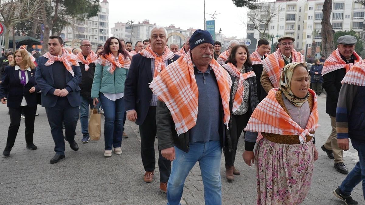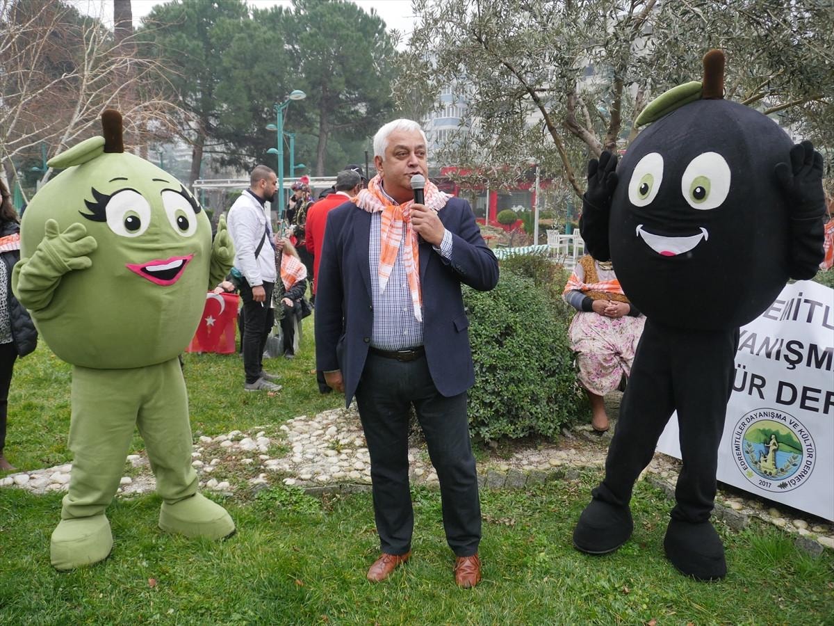 Edremit Belediyesi ile Edremitliler Dayanışma ve Kültür Derneğince Balıkesir Büyükşehir Belediyesi'nin katkılarıyla organize edilen "5. Zeytin Hasat Sonu Meci Şenliği"ne katılanlar, Edremit Ticaret Odası önünde toplandı.