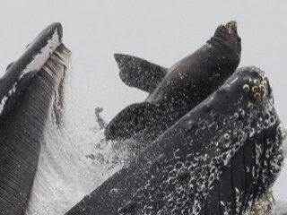 Bu hayvanların yemek boruları da bir greyfurt ya da küçük bir kavun genişliğinde. Kambur balinalar bu yüzden kril ya da ançüez gibi küçük deniz canlılarıyla besleniyor. Yani bu hayvanların deniz aslanı büyüklüğünde bir canlıyı yutması mümkün değil.