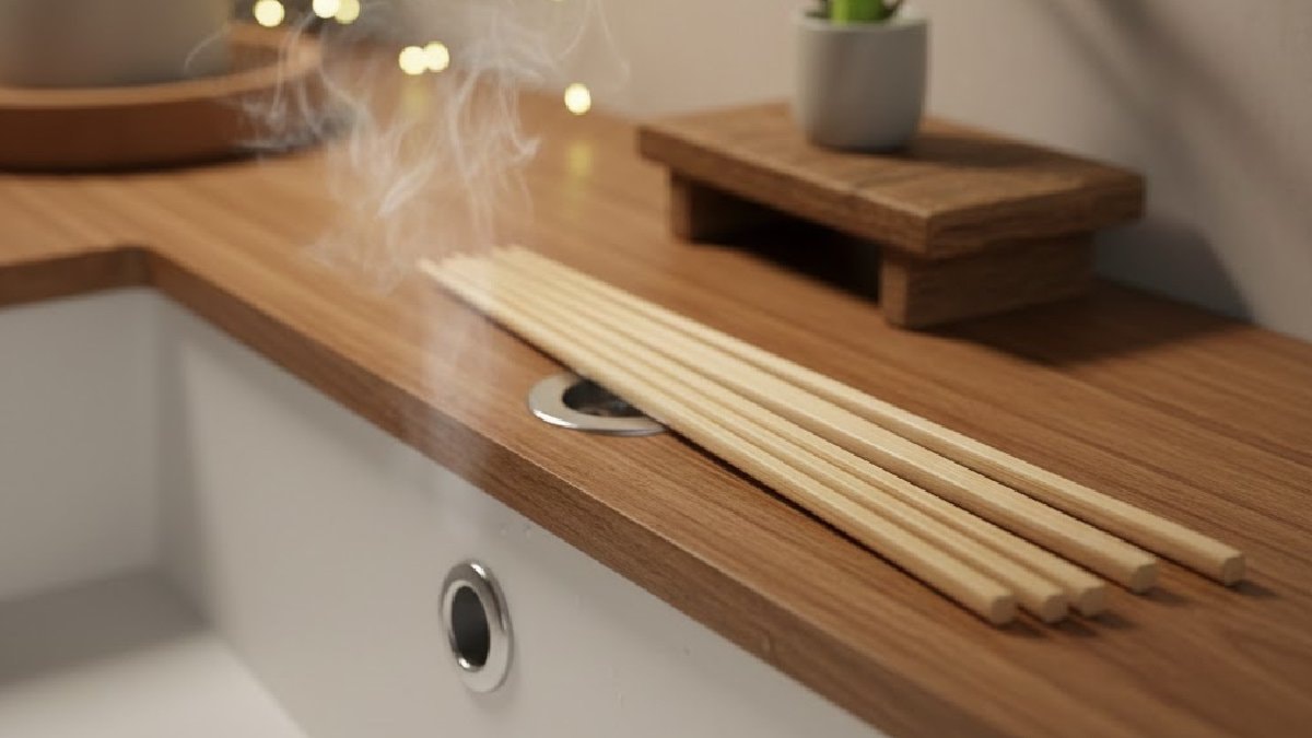 Ahşap yemek çubukları, gider ağzının hemen yanına, suya temas etmeyecek şekilde yerleştirildiğinde havada asılı kalan nemi ve kötü kokuları bir sünger gibi emmeye başlıyor.