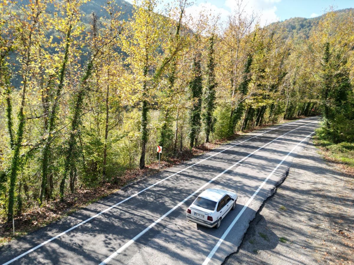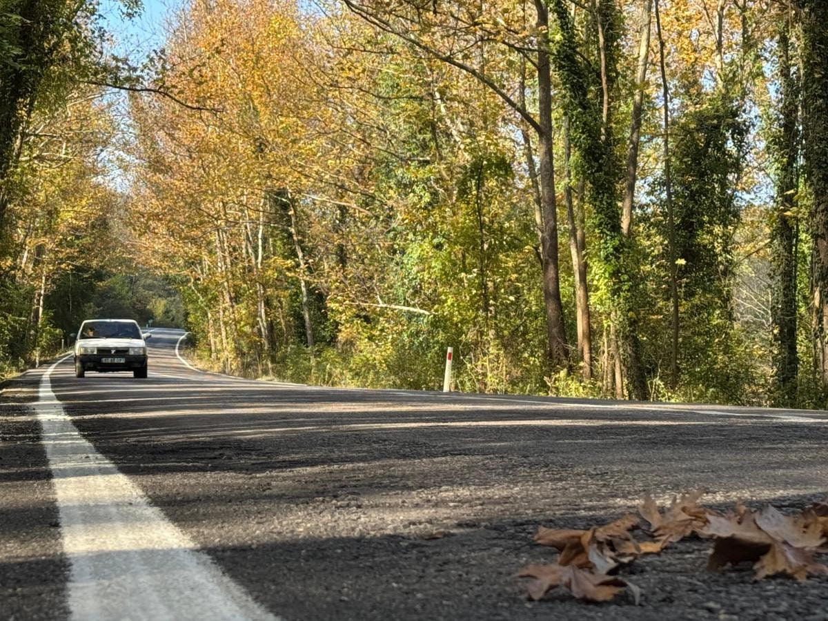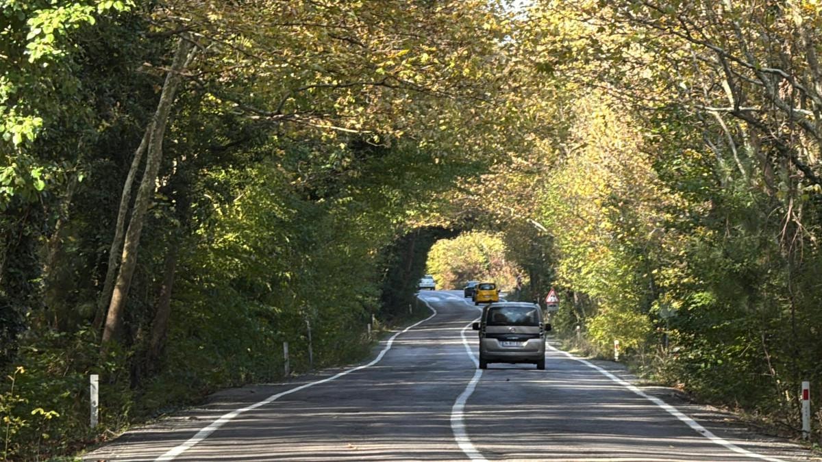 Yaprakların yola düşmesiyle görülmeye değer bir manzara sunan yoldan geçen sürücüler, keyifle yolculuk yapıyor. Yolda sıra sıra dizili olan kavlak ağaçları renk cümbüşüyle ayrı bir güzellik sunuyor.