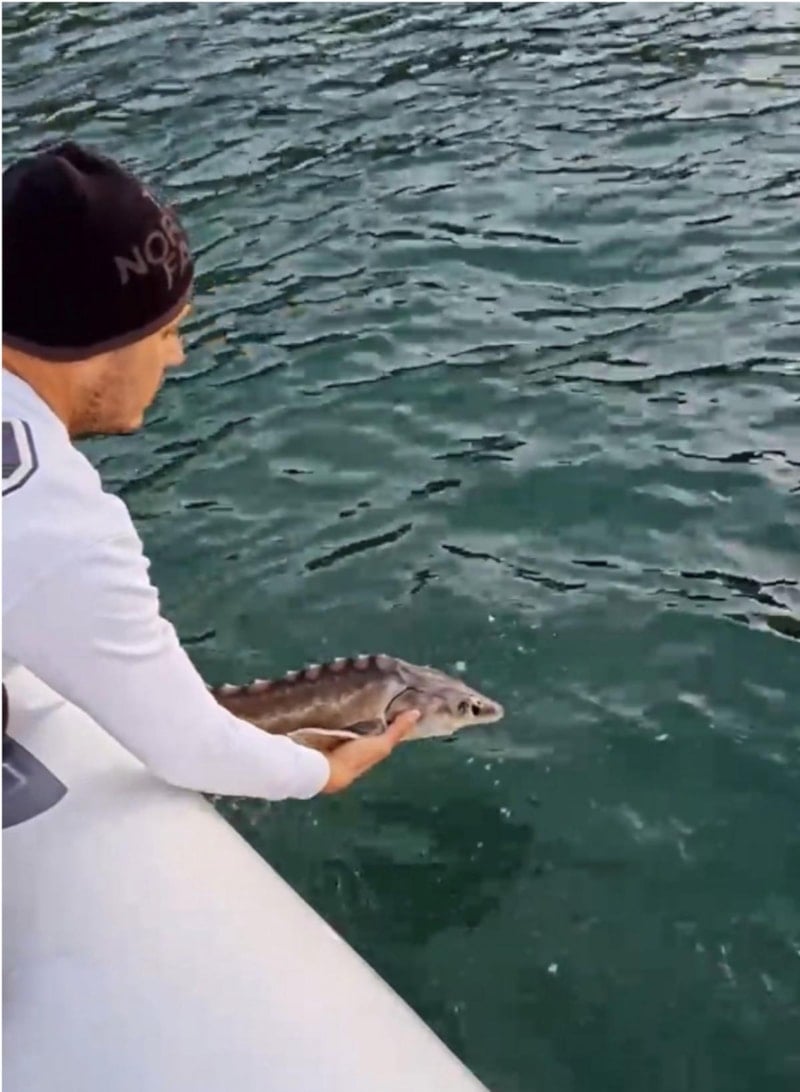 Yavuzyiğit, teknesine aldığı balığı daha sonra denize bıraktı.
