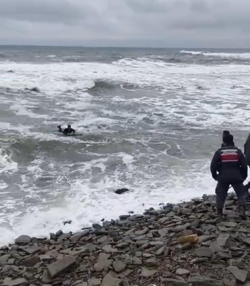 İstanbul'dan Kurucaşile ilçesine gelen ismi öğrenilemeyen 2 kişi, sörf yapmak için Hisar köyü Çambu yalısı mevkiinde denize girdi.