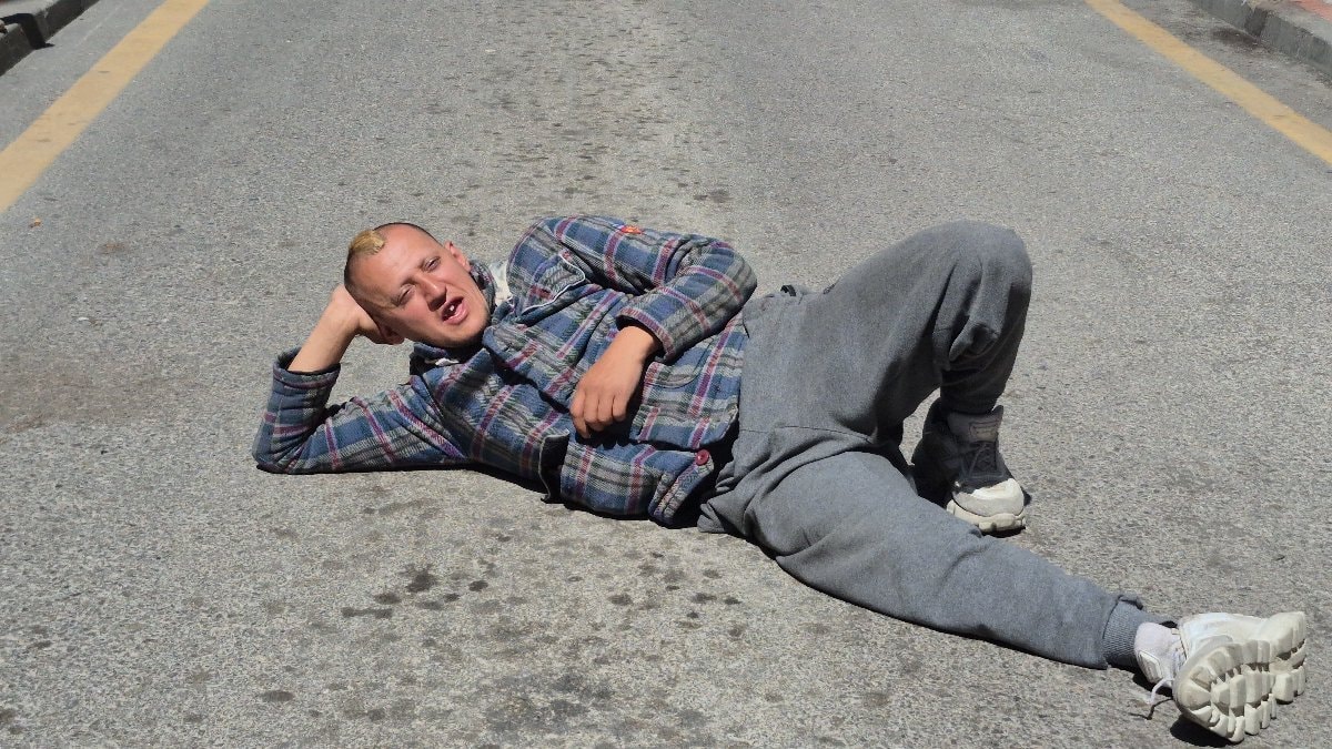 Yola sere serpe yatan bir genç ise güneşin keyfini çıkardı.