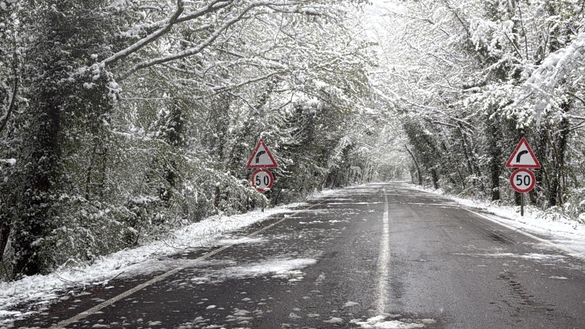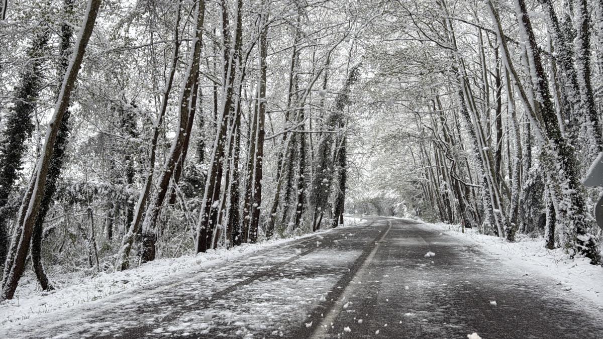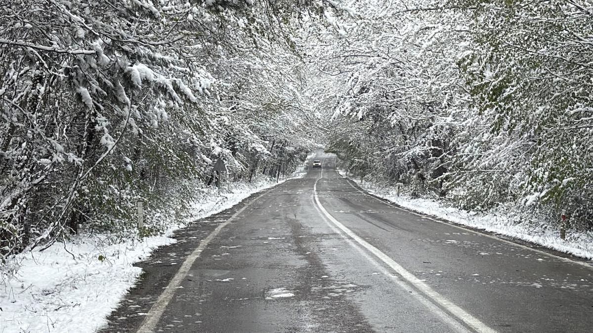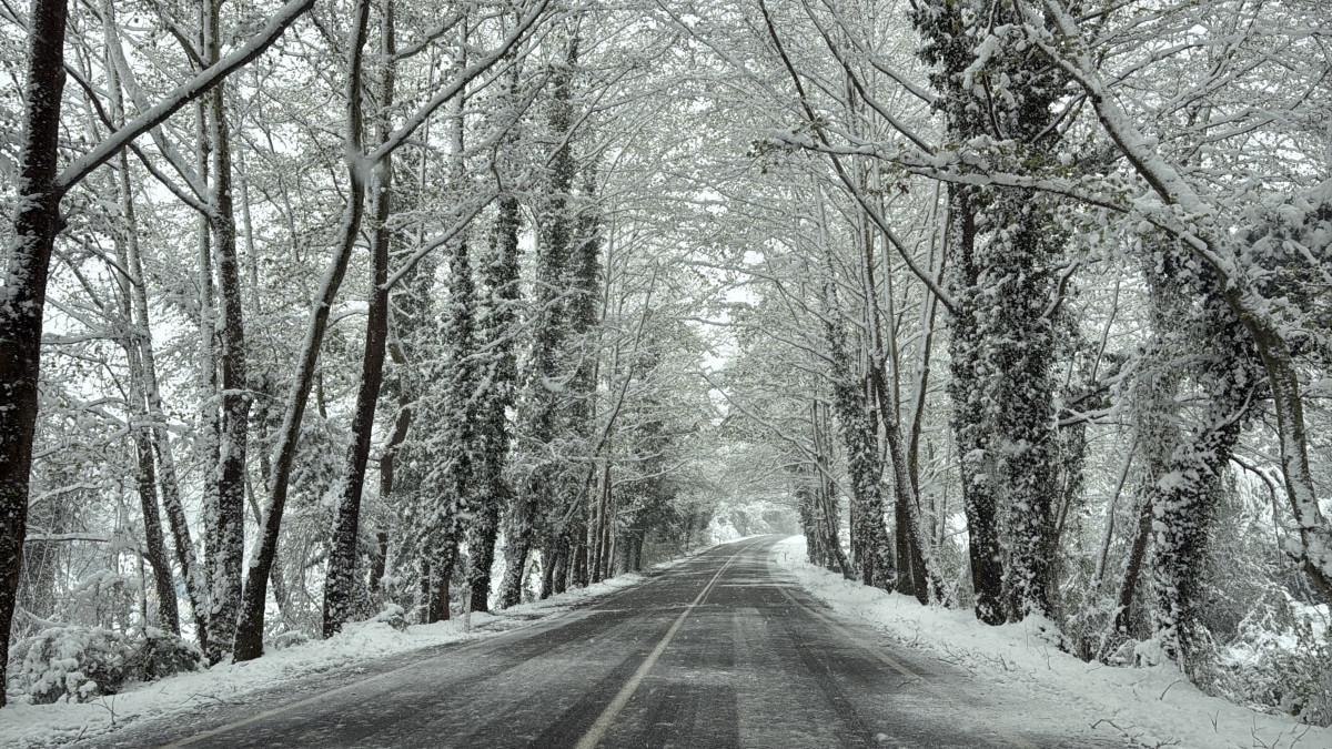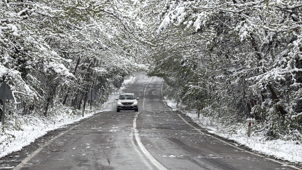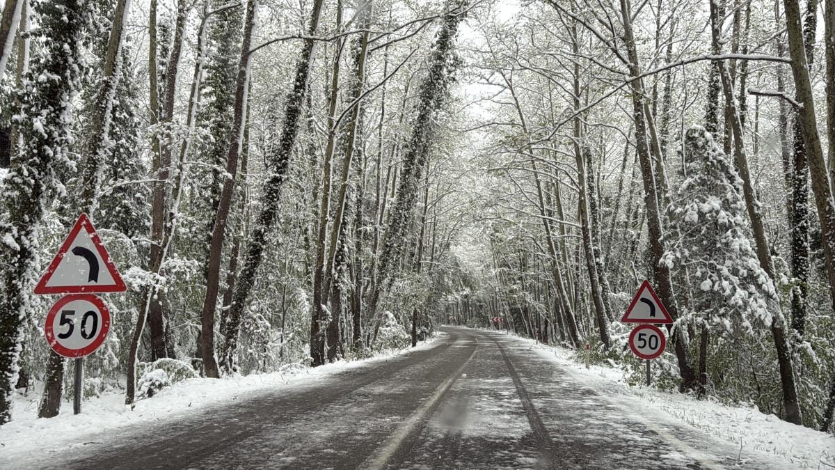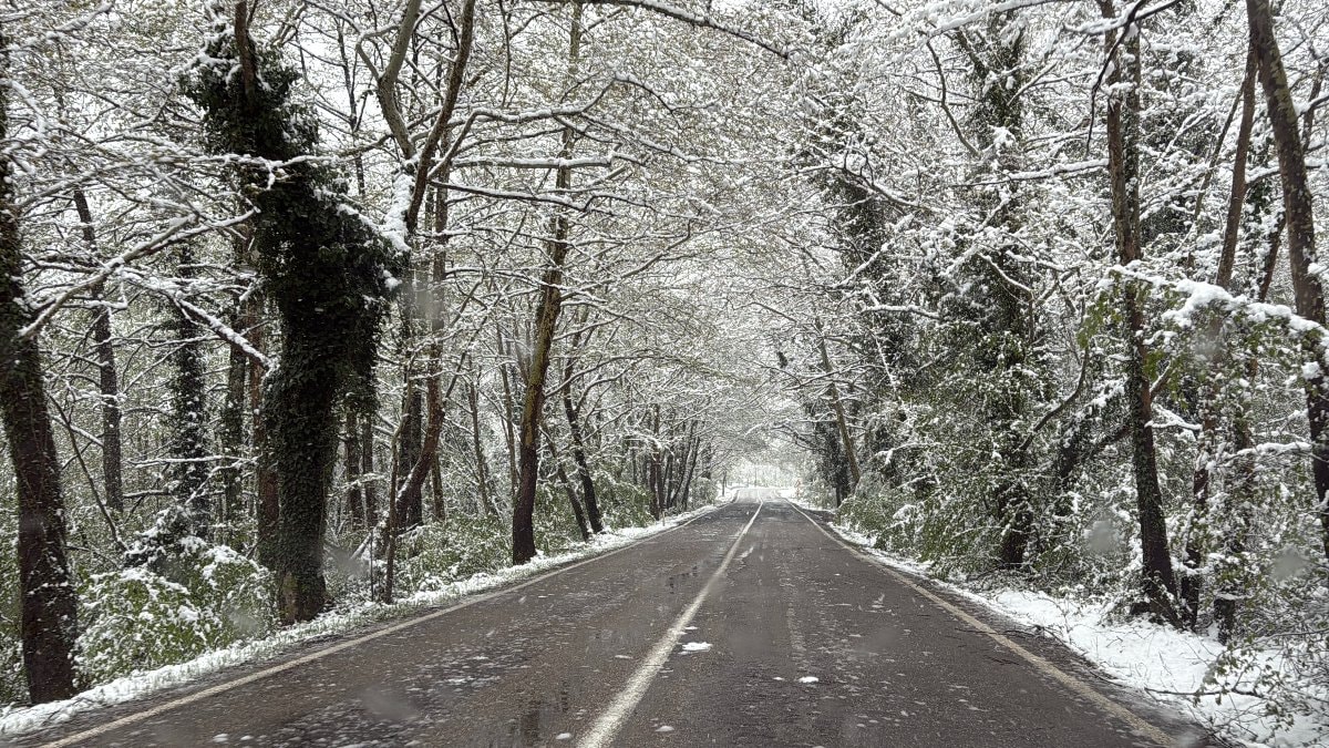 Bölgede iki tarafı ve üstü ağaçlarla sarılı olan, "Ağaç tünel yol" olarak bilinen kara yolundaki ağaçlar beyaz örtüyle kaplandı.