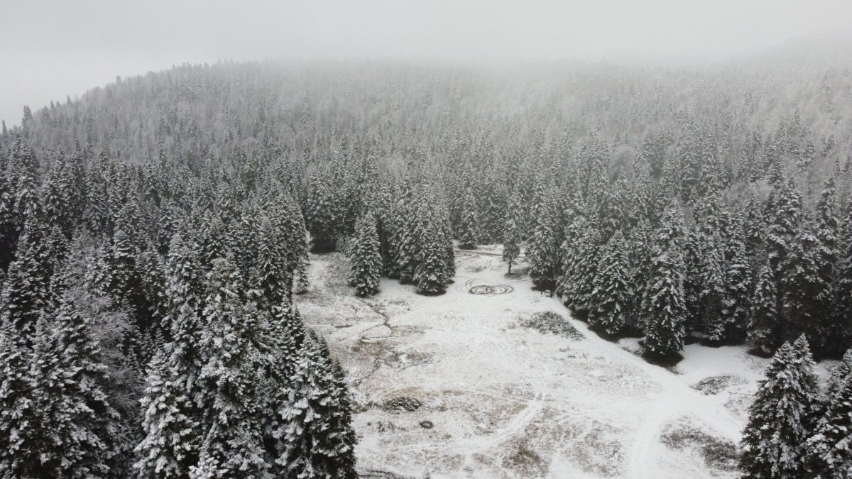 Bartın'ın Ulus ilçesindeki Gezen ve Ardıç Yaylaları'nda kar ve sisin yolaçtığı manzara görenleri hayran bıraktı.