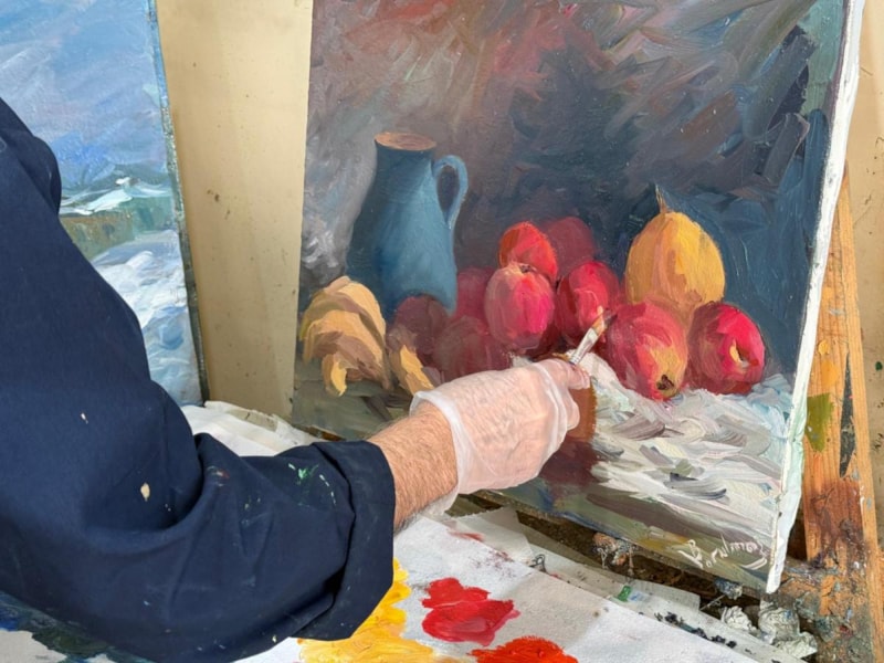 Resim benim için tutku, resim yapmadan durma şansım yok. Aynı bir balıkçının her gün balığa gitmesi gibi bir hobi benim için. Burada küçük bir atölye oluşturdum. Burada fırsat buldukça resim yapmaya devam ediyorum. Bana gelen hastalar resim yaptığımı duyunca bazıları çok şaşırıyor, merak edip atölyeye geliyorlar. Hekimlik zor bir meslek, hata kabul etmez. Bunun eğitimini almadım ama yapboz taktiği alıştım. Şu ana kadar 500'ün üzerinde yağlı boya tablo yaptım, yine 20'nin üzerinde de sergi açtım. Resimlerimde doğa ve natürel yapıyorum. Sağlığım el verdiğince resim yapmaya devam edeceğim.