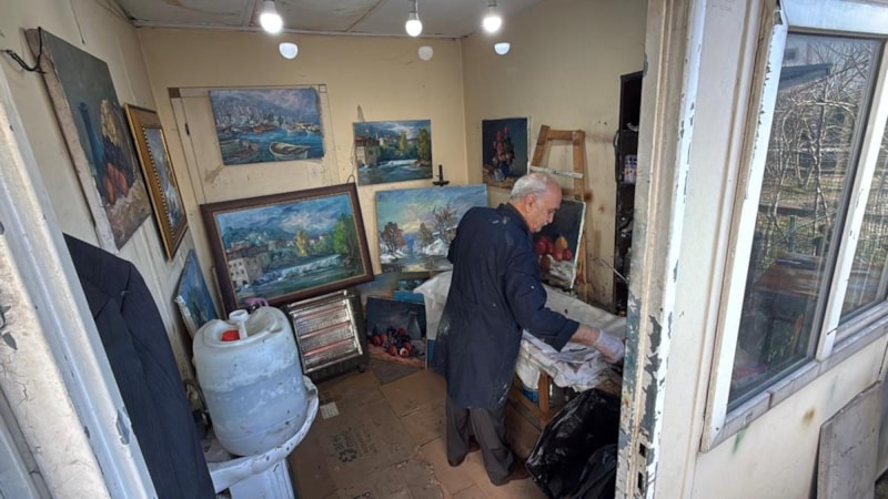 Yorulmaz, bir yandan tıp merkezinin arkasındaki 5 metrekarelik konteynerde mesai saatleri dışında resim yapıyor.