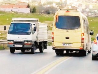 Karşı yönden gelen kamyonlarla burun buruna kalıyor ve tekrar şeridine girmek için hamle yapıyor.