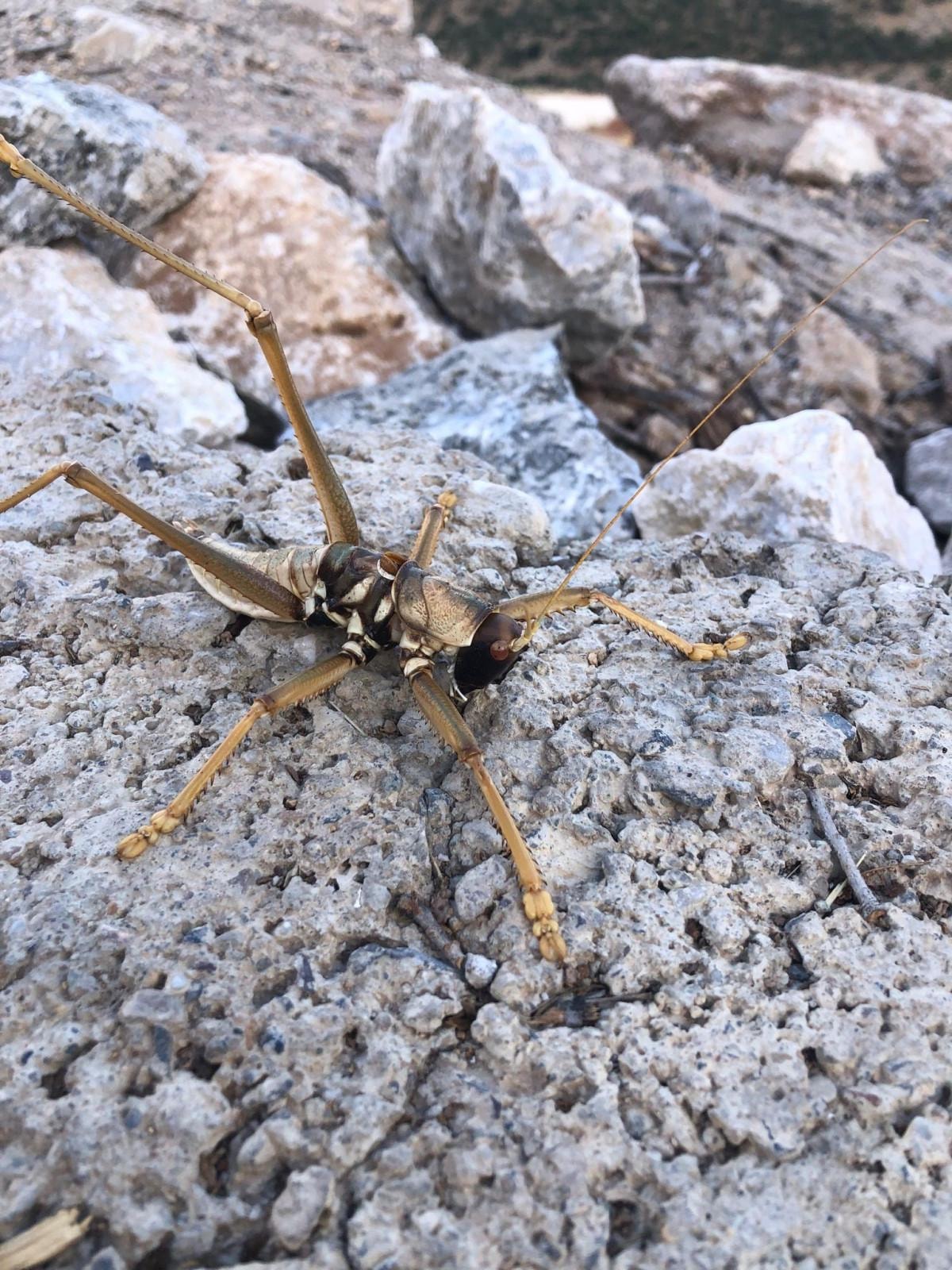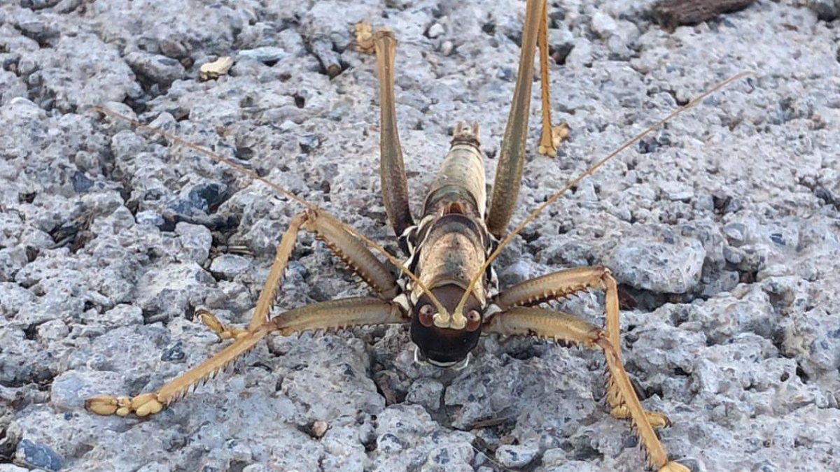 Boyu en az 20 santim olan bu çekirgenin etçil bir hayvan olduğu ve tarlalardaki zararlı böceklerle beslendiğini öğrendim. Çekirgeyi görür görmez cep telefonumla onu kayda aldım. Zararsız bir hayvan olduğunu görünce de onu doğal ortamına bıraktım.