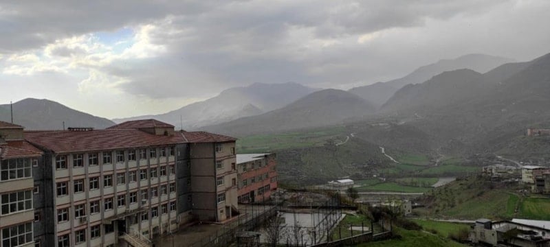 Sabah güneşli havanın etkili olduğu Sason ilçesinde, öğle saatlerinde sağanak yağış başladı.
