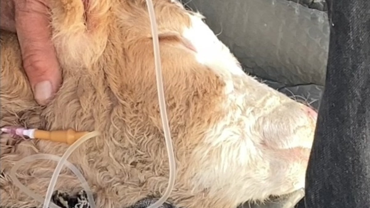 Şahin, buzağıya iğne yaparak serum taktıklarını ve sıvı dengesini elektrolitlerle sağladıklarını söyledi.
