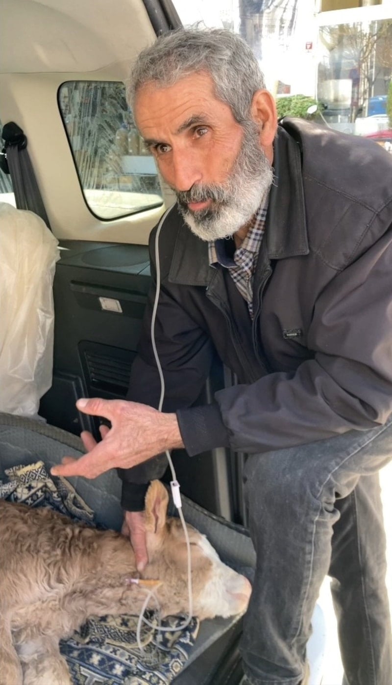 Kozluk ilçesinde besicilik yapan Mehmet Şirin Şahin, hastalanan 4 günlük buzağısını hafif ticari aracı ile kent merkezindeki veterinere götürdü. Şahin, serum takılan buzağısının başında uzun hava okudu.