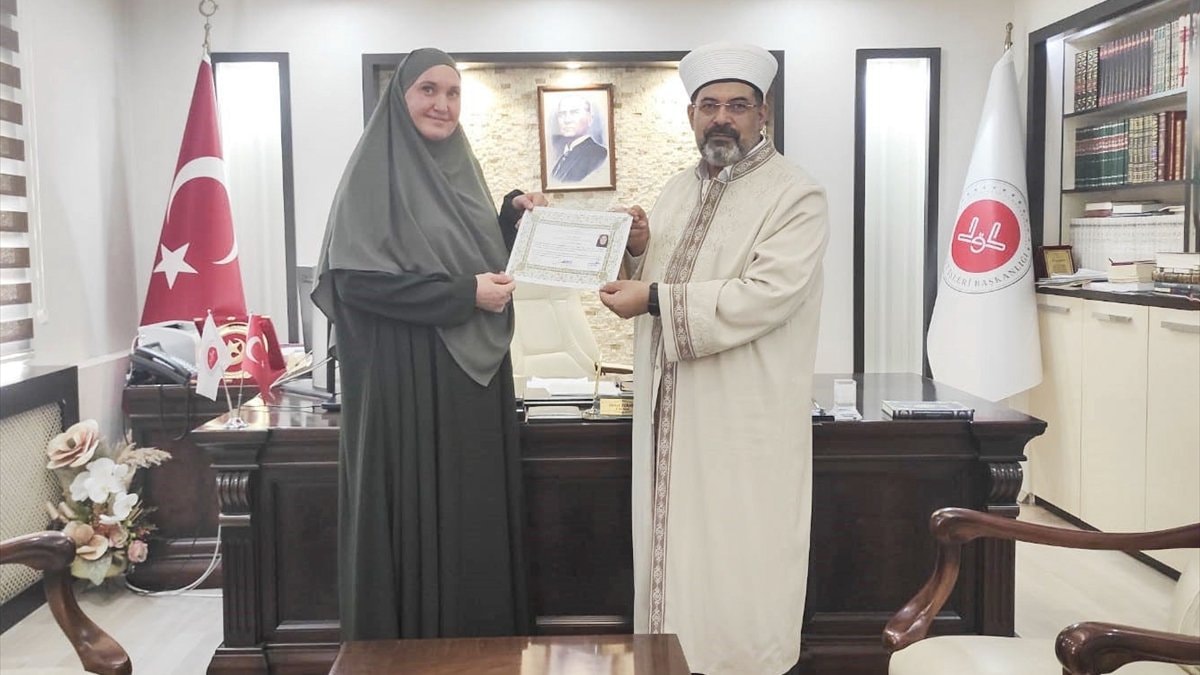 Törenin ardından Müftü Durmuş, Natalia’yı tebrik ederek Diyanet İşleri Başkanlığı’nın yayınlarından Kur’an-ı Kerim ve çeşitli dini kitaplar hediye etti.