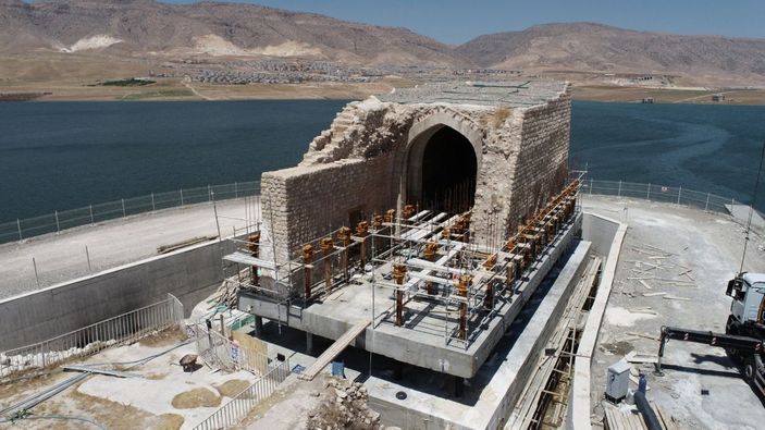 Devlet Su İşleri 16'ncı Bölge Müdürlüğü'nce yapılan açıklamada, Küçük Saray'ın 76 kriko desteğiyle yükseltildiği bildirilerek, "Sarayın dördüncü kademe kaldırma işlemi başarıyla gerçekleştirilmiştir. Böylece eser, ilk haline göre 6 metre yükseltilmiş oldu. Son kademenin kaldırılmasının ardından, eserin altına beton imalatı yapılacak. Saray, 76 kriko ile 6 metre sınırına yükseltildi. Tarihi yapı, dört aşamada tamamlanmış oldu. Kapalı alanı 216 metrekareye sahip, 3 penceresi ve aslan kabartmasının üzerinde bulunduğu Küçük Saray'daki çalışmaların tamamlanmasıyla, tarihi kale yeniden siluetine kavuşmuş olacak." denildi.