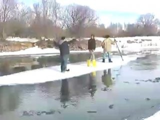Yaptıkları iş çok eğlenceli gibi görünse de aslında bizlere ne zor şartlar altında balık tuttukların ortaya koydu. Videoyu çekenlerin de zaman zaman 'düşmeyin dikkat edin' diye uyardığı balıkçılar, ilgi odağı oldu. Buzu sal gibi kullanan 3 mecaresever, en sonunda karşıdan karşıya geçmeyi başardı.