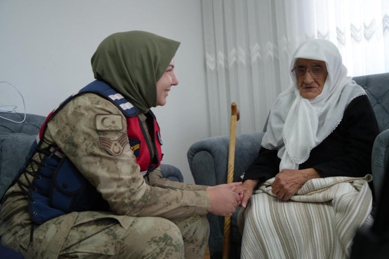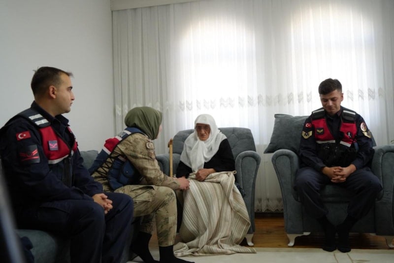 Kendisini ziyaret eden jandarma personelini kapıya kadar dualarla uğurlayan Rabiye Nine, arkalarından el salladı.