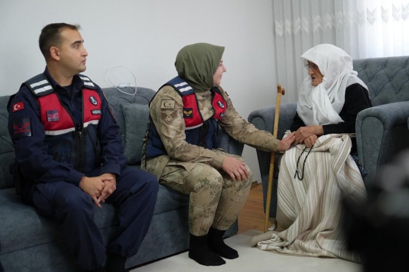 Vatan sevgisiyle tanınan yaşlı kadına jandarmadan anlamlı ziyaret...