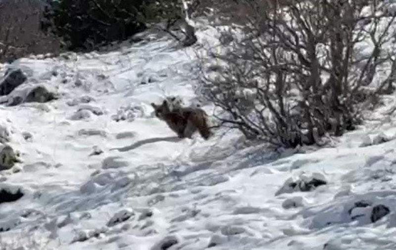 Ayının izini süren vatandaş, ayının dikkatini çekmek için köpek sesi çıkardı.
