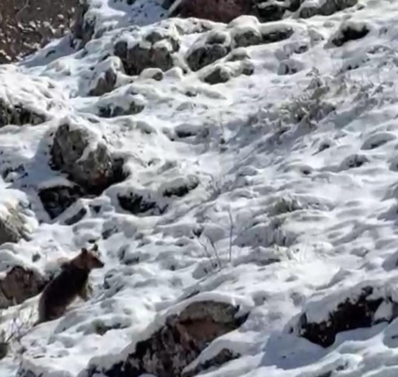 Bir süre vatandaşı uzaktan izleyen ayı, daha sonra kaçarak gözden uzaklaştı.
