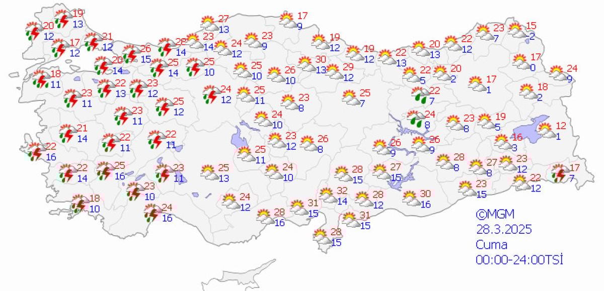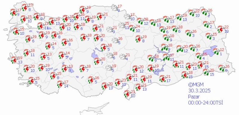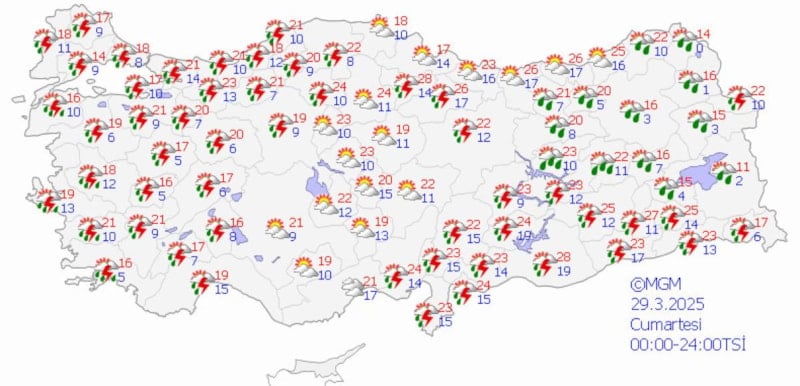 Meteoroloji Genel Müdürlüğü, son hava durumu raporunu yayınladı.
