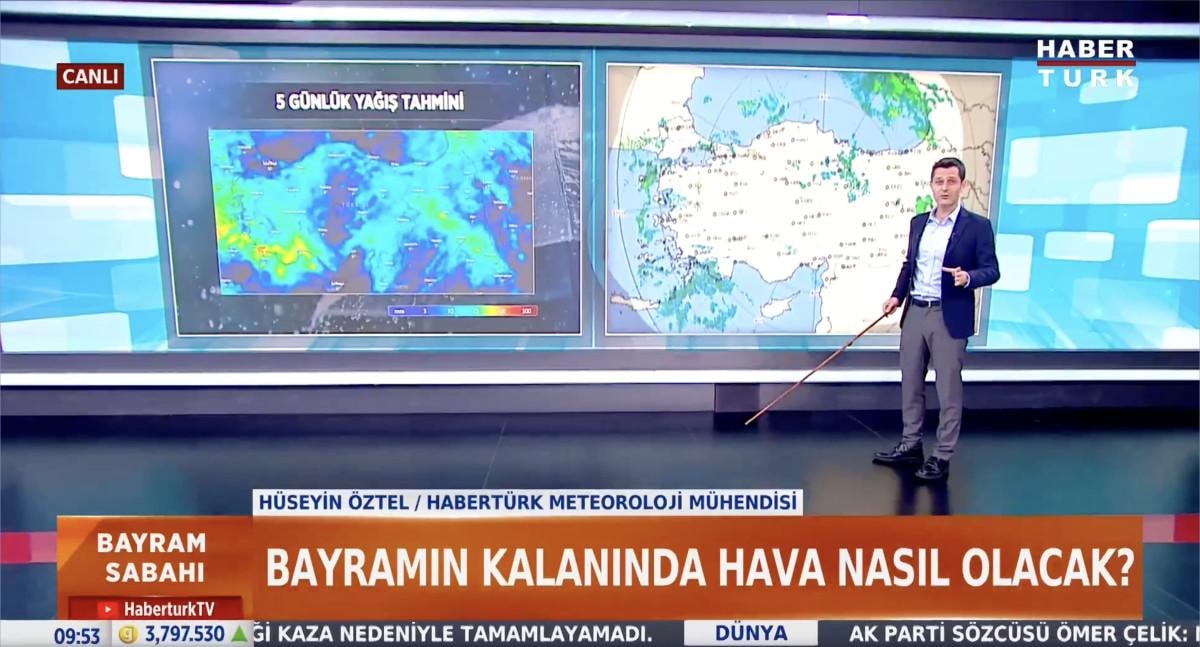 Ela Rümeysa Cebeci'nin HaberTürk kanalında sunduğu, Bayram Sabahı Programı'na, Meteoroloji Mühendisi Hüseyin Öztel'in konuk oldu.