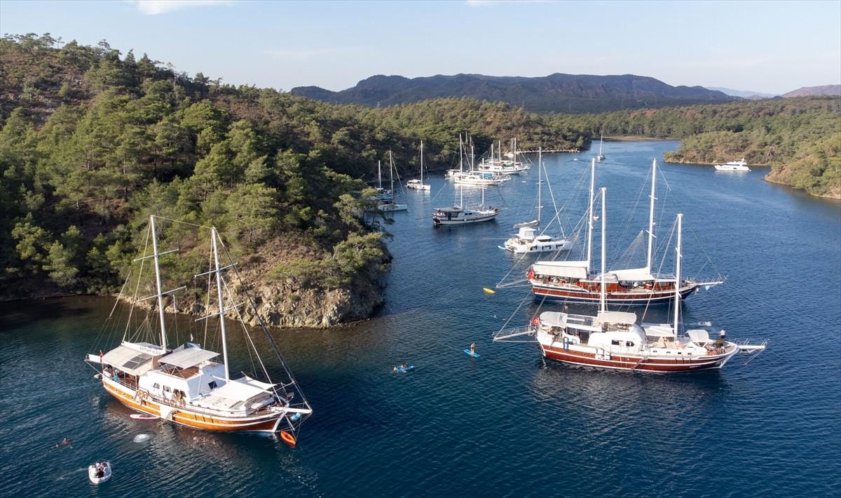 9 günlük Kurban Bayramı tatilinde de Bodrum'dan Antalya'ya kadar farklı rotalarda, tekne, gulet ve yatlarla denize açılan yerli ve yabancı turistler, demir atılan koylarda yoğunluk oluşturdu.