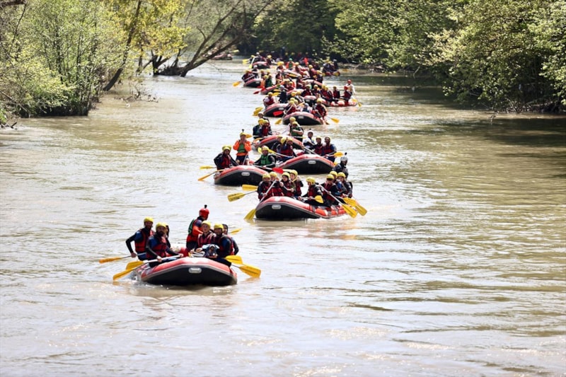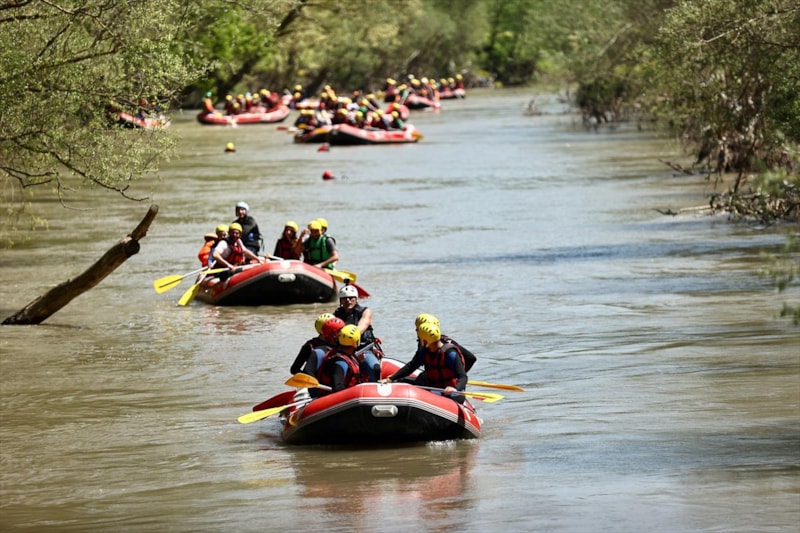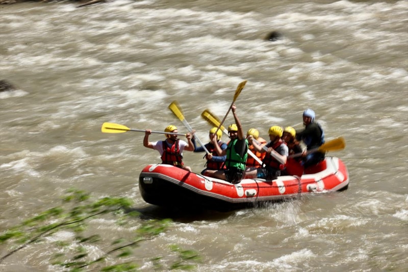 Bayramın ikinci günü bölgeye gelen tatilciler, 16 kilometrelik parkurda doğayla iç içe rafting heyecanı yaşadı.