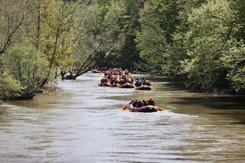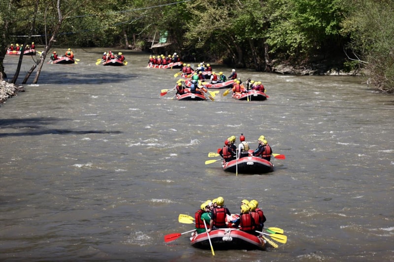 Adrenalin tutkunları bayram tatilinde Melen Çayı'nda rafting yaptı