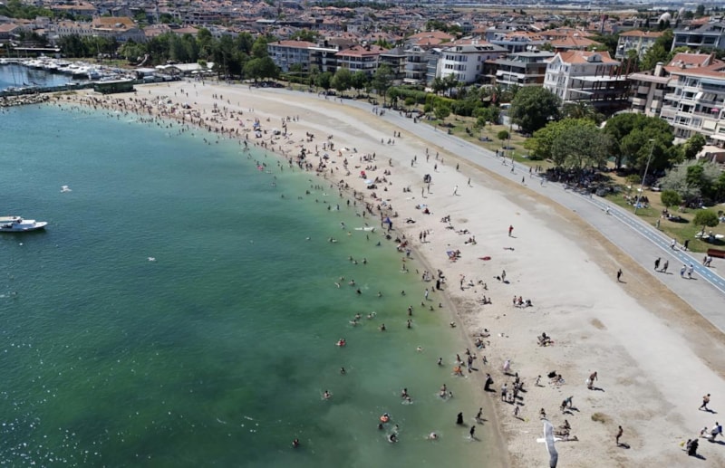 Vatandaşların sahillerde oluşturduğu yoğunluk drone havadan görüntülendi.