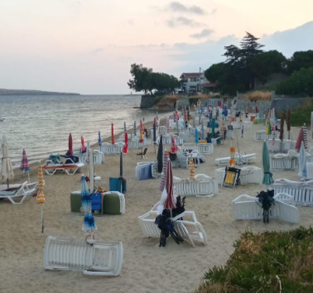 Fotoğraflarda görüldüğü gibi, sahilde belki de sezon başından bu yana hiç kullanılmamış, demirli plaj gereçlerinin oluşturduğu ucube görüntü içleri karartıyor.