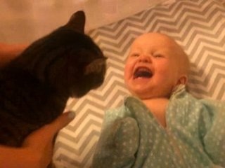 Kediyi sevdiği her halinden belli olan bebeğin, yüz ifadesi ve hareketleri sosyal medyada büyük beğeni topladı.