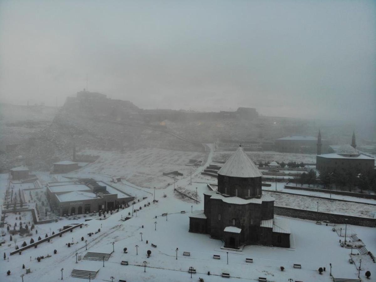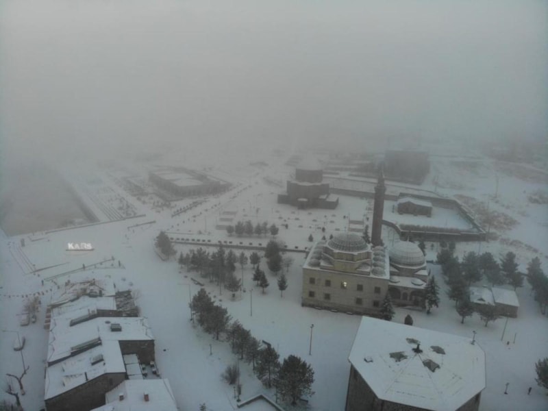 Türkiye’de karın en çok yakıştığı illerden biri olan ve birçok tarihi değeri bünyesinde barından Kars Vadisi Bedesten Bölgesi, sis altında havadan görüntülenirken beyazlara bürünen Kars Kalesi, Ulu Camii, Havariler Kilisesi, Evliya Camii, Harakani Külliyesi, tarihi hamamlar ve Taş Köprü kartpostallık görüntüler ortaya çıkardı.