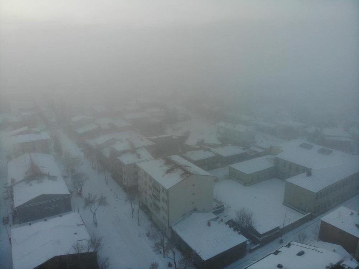 Kars'ın simgelerinden biri olan Kars Kalesi ise yoğun sis altında kayboldu.