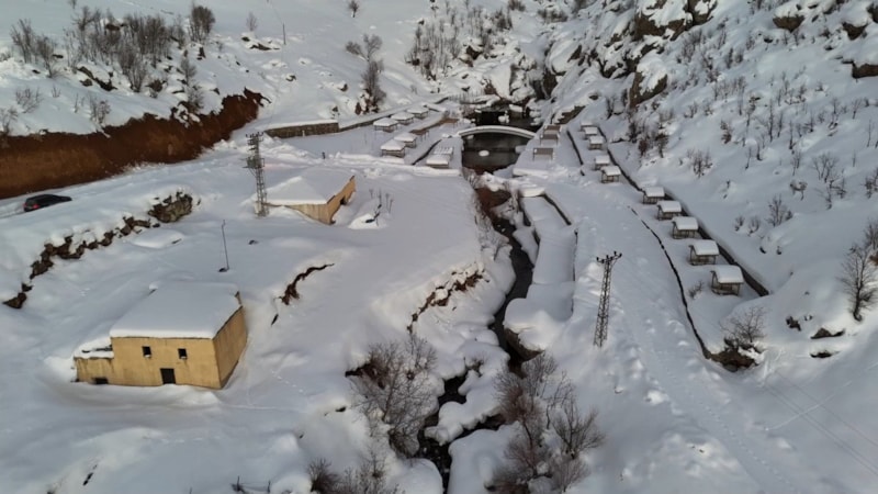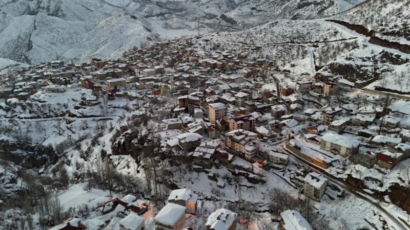 Beytüşşebap ilçesi, 1 aydır aralıklarla süren kar yağışı ile birlikte beyaza büründü. Kato Dağı eteklerindeki ilçe merkezi ve çevrede oluşan kar manzaraları, drone ile görüntülendi.