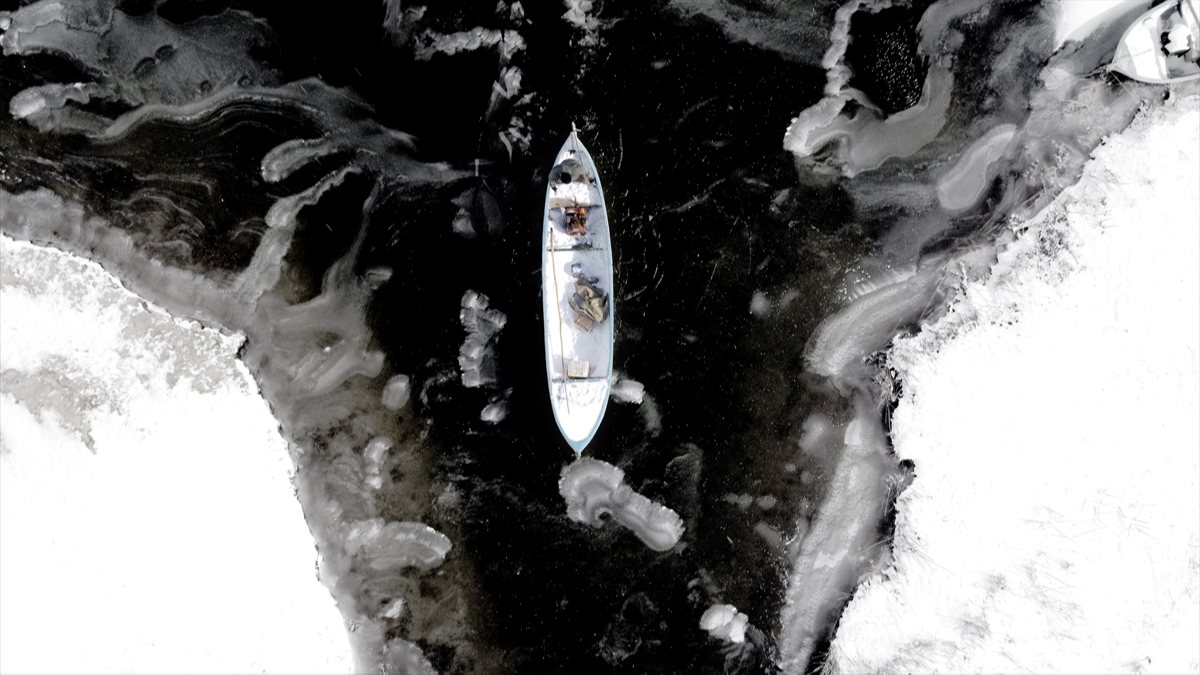 İçerişehir ve Çiftlik mahallelerinde balıkçı limanı çevresi buz tuttu. Balıkçılar, kalın buz parçalarını kırarak göle açılmaya çabaladı.