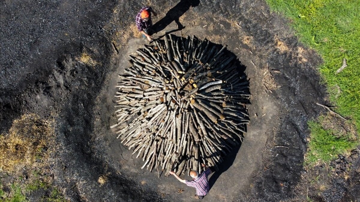 Sistemli şekilde yığarak küçük bir tepe haline getirdikleri odunların üzeri ile etrafını meşe yaprağı ve toprakla kapatan Hasandereliler, günlerce yavaş yavaş yanan ateşin başında nöbet tutuyor.