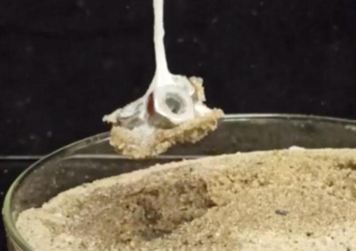 Bilim insanları yaptıkları çalışmalar sonucunda bir aygıttan fırlatıldığında güçlü bir yapışkan life dönüşerek kendisinin birkaç katı ağırlığa sahip nesneleri kaldırabilen bir sıvı geliştirmeyi başardı.
