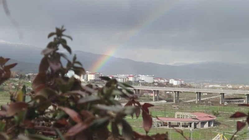Yağmurun ardından güneşin yüzünü göstermesiyle Bingöl semalarında beliren gökkuşağı, doğaseverler ve fotoğraf tutkunları için büyüleyici anlar sundu.