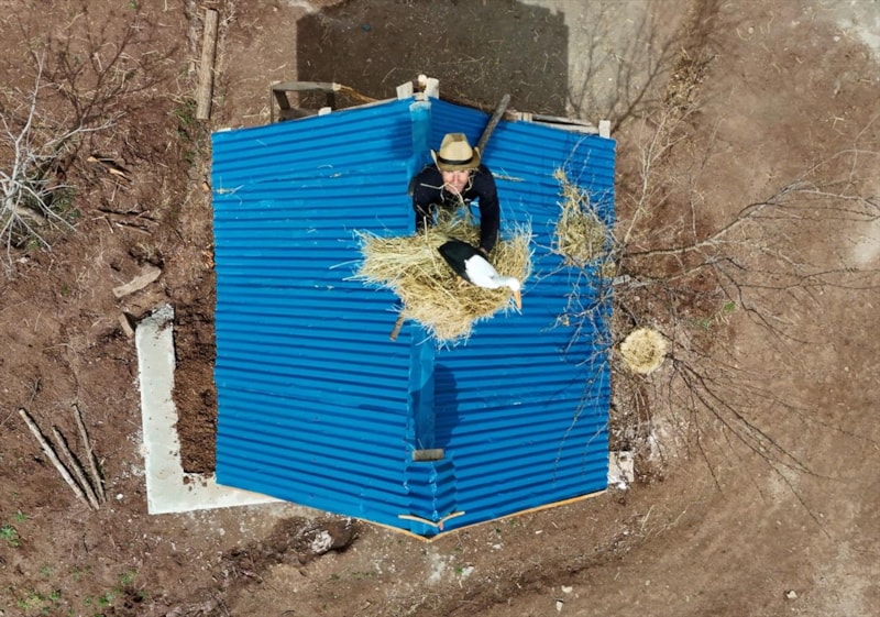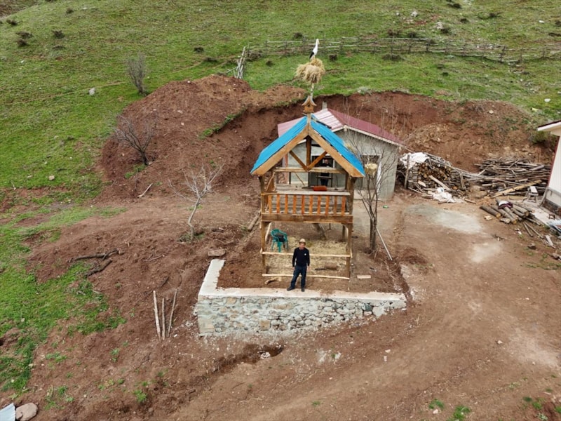 Çocukken kuzuları otlatırken leylekleri görüyordum ama buraya geldikten sonra hiç leylek görmedim. Bizimle beraber 1993'te demek ki göç etmişler. Leylekler geri gelsin, onlara eskiyi hatırlatayım diye bir yuva ve maket leylek yaptım. Leyleklerin yolunu gözlüyorum. Neden olmasın, ben inanıyorum ki leylekler gelecek.