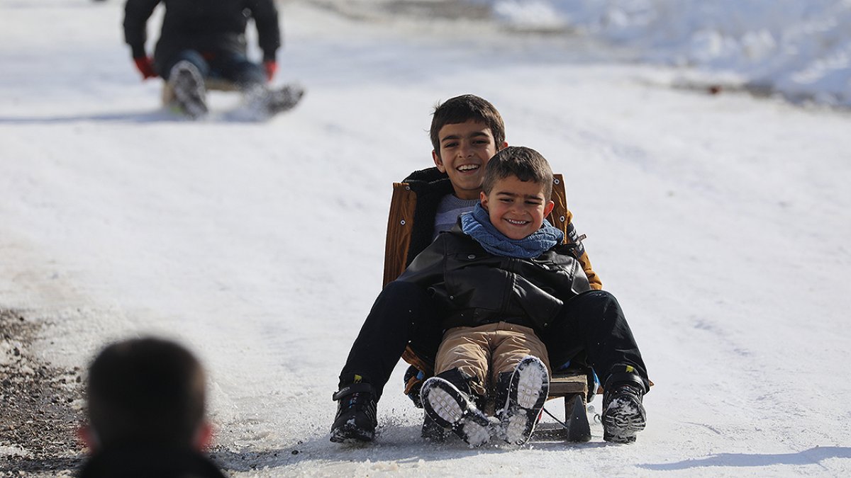 Bingöl'de karın kapattığı yollar, çocuklara eğlence oldu-Video