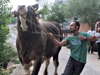 Bu buzağıya gözü gibi bakan üreticinin, 2.5 yılın sonunda hayvanı bir buçuk ton ağırlığa ulaştı. Bursa'da yetişen en iri boğayı kendisinin yetiştirdiğini ifade eden üretici, bir buçuk ton ağırlığa ulaştırdığı boğasını 45 bin lira fiyatla satışa çıkarttı.