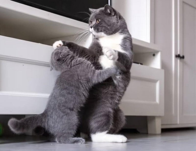 Oyun: Yavru kediler ve genç kediler, enerjilerini atmak ve avlanma becerilerini geliştirmek için birbirleriyle "kavga" edebilirler. Bu tür kavgalar genellikle zararsızdır ve yavru kedilerin sosyalleşmesine yardımcı olur.