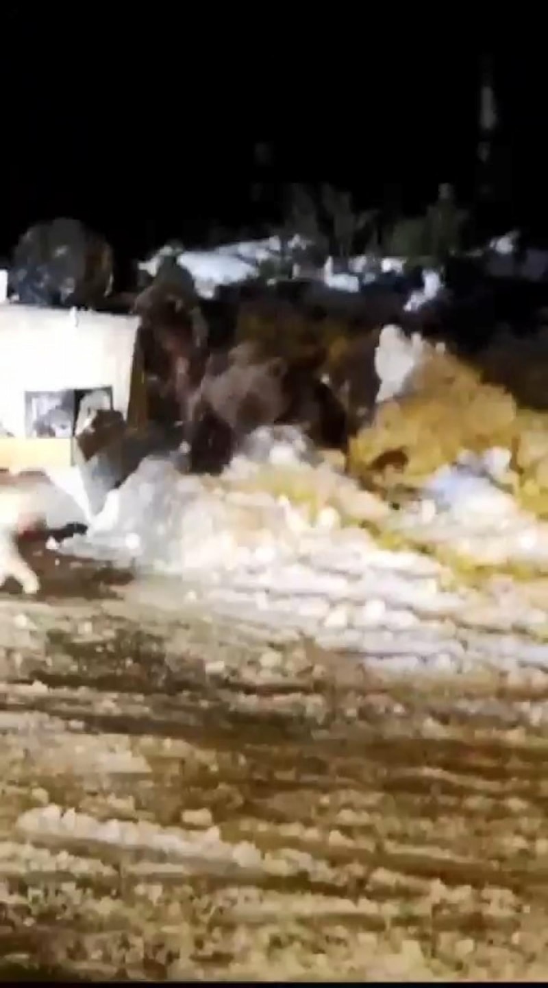 Uludağ'ın ‘Uyuyamayan’ ayıları olarak bilinen ayı ailesi, yemek bulmak için Sarıalan’a kadar indi. Çöpte buldukları yiyecekleri afiyetle yiyen ayıları, köpek rahatsız etti.