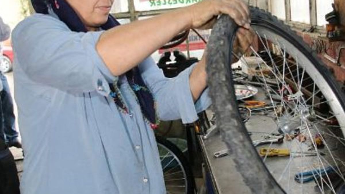 Bisiklet tamiri için oğluna yardımcı olan kadın usta oldu VİDEO