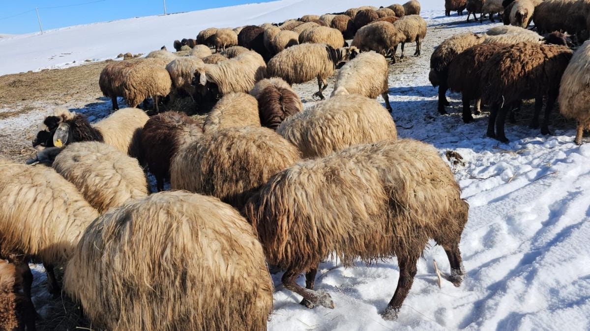 Bazen kar fırtına nedeniyle günlerce hayvanlarımız içeride kalıyor. Hayvanlarımız havanın güzel olduğu günlerde ise yazın topladığımız otlarla kar üstünde besliyoruz.” dedi.
